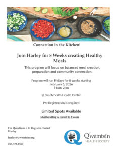 Skeetchestn Health Centre Connection in the Kitchen / whats new / By leeanne For more information call Harley at 250.373.2580.