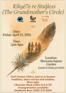 TteS Women Elders you are invited to join The Grandmothers Circle. If you would like more information please call Christine Mack at QHS 250.314.6732.
