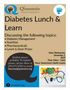 27/11/2025 11:00 AM - 27/11/2025 3:00 PMWe will be making dream catchers for our Arts and Craft Day. If you would like to register please call the Skeetchestn Health Centre at 250.373.2580 or email leeanne@qwemtsin.org or harley@qwemtsin.org
